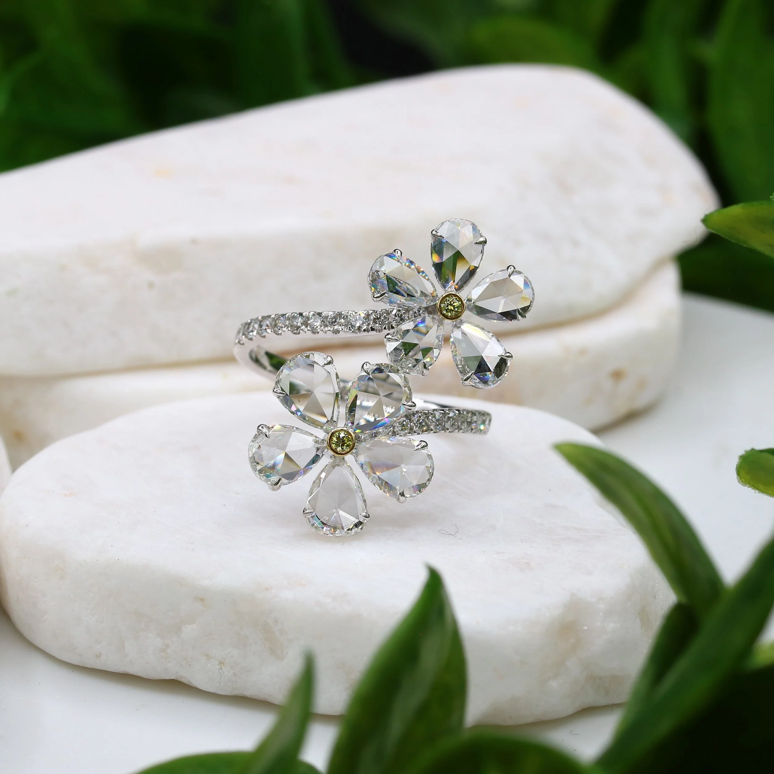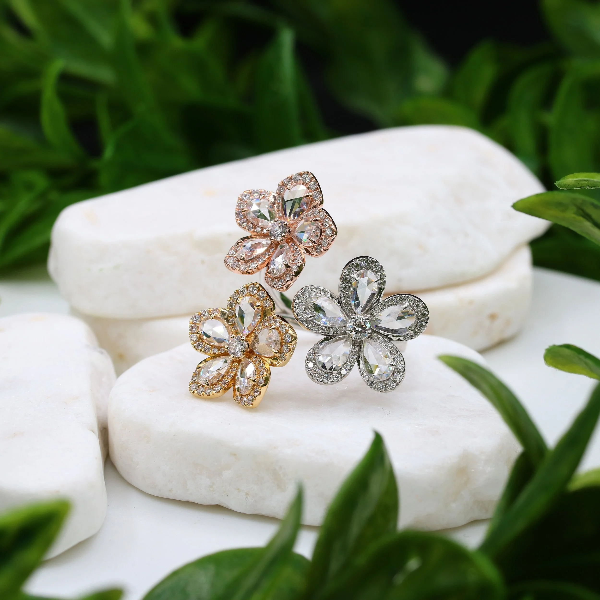 Round Diamonds set in 18k Rose gold and platinum Double halo style ring with Micro Pave`